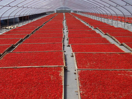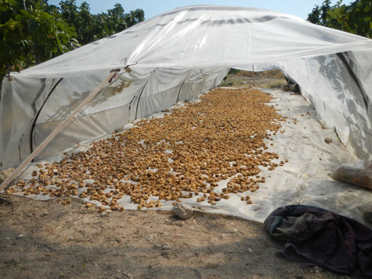 Die Früchte werden auf dem Boden auf Matten oder auf Lattenrosten ausgebreitet und der Sonnenwärme ausgesetzt. Die Trocknungsdauer beträgt z.B. bei Feigen 3 - 4 Tage und bei Sultaninen 1 - 2 Wochen.
