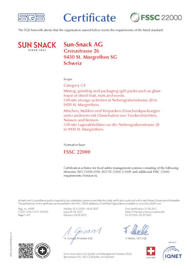 Die Standards werden regelmässig durch eine akkreditierte Prüfanstalt kontrolliert und zertifiziert. Als Verarbeiter von Bio-Produkten erfüllen wir sämtliche Anforderungen der gesetzlichen
